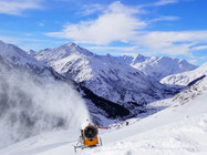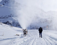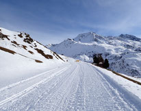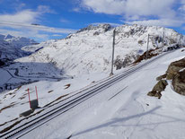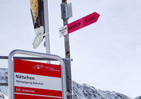 Ab heute ist es möglich, auf der Oberalp-Passstrasse vom Nätschen runter nach Andermatt zu laufen. Entlang des Strasse sind einige Schneekanonen am Laufen, sodass man immer wieder "beschneit" wird...
