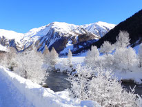 Gleich nach Ankunft und einchecken gehts los. Via Golfplatz der jungen Reuss entlang bis Realp und zurück mit der Bahn. Herrlich verschneite Landschaft mit viel Raureif.