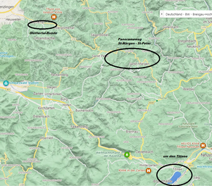 Heute gehts von St. Märgen hinauf auf den Panoramaweg Richtung St. Peter. Schöne, hügelige Landschaft - fast wie im Appenzeller-Land. Die Strecke ist Teil des St. Jakobsweges.