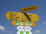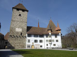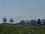 Mit Bahn und Bus geht's nach Englisberg ob Belp. Hier startet der Gürbetaler Höhenweg. Leider ist die Sicht sehr diesig, so dass man die Berge nur erahnen kann. Schöne Wanderung in einer lieblichen Landschaft mit vielen grossen, alten Bauerhäusern. Unsere Etappe geht bis Schloss Toffen.