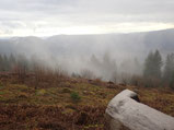 Das Wetter ist nicht besser. Nebel und Nieselregen. Aber wir sind hart im Nehmen.... Wir gehen von Kniebis aus auf dem Heimatpfad zu einem Aussichtspunkt, wo wir zum Ellbachsee runter sehen, der aber zur Zeit nur wenig Wasser hat.