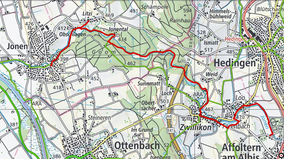 Wieder mal einem Flüsschen entlang: der Jonen. Von Affoltern (ZH) nach Jonen (AG). Start: Parkplätze bei den Sportplätzen in Affoltern, von Jonen zurück mit dem Bus.