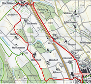 Vom Bahnhof Mettmenstetten geht's durch Feld und Wald Richtung Dachlissen, wo sich ein Hornusserplatz befindet. Nach dem Dorf gibt's ein altes