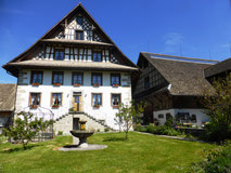 Durch Feld und Wald, vorbei an schönen alten Häusern und mit teils tollem Blick in die Berge