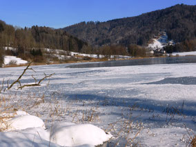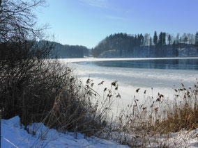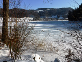Der See wird belüftet, deshalb ist er nicht ganz zugefroren und auch nicht begehbar.